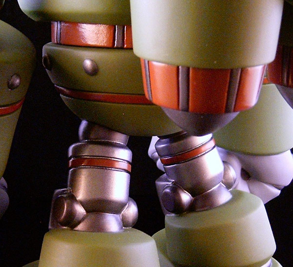 These Combat-R Zero figures are just simply cool. There’s nothing more that really needs said other than they look COOL. Atomic Mushroom Toys has brought us a set of five different color schemes, four of which you can purchase from select retailers for about $55 to $60 US and the fifth which you can only get directly from Atomic Mushroom Toys’ website as part of their Super Set (all five) for $265. If I was independently wealthy, I would have purchased the set before even posting this. I know that may seem steep, but keep in mind that these are almost 10 inches tall and limited to 500 figures per color! Oh yeah, did I mention that “Plutonium” (the exclusive to the set figure) glows in the DARK! How cool is that?!?!?